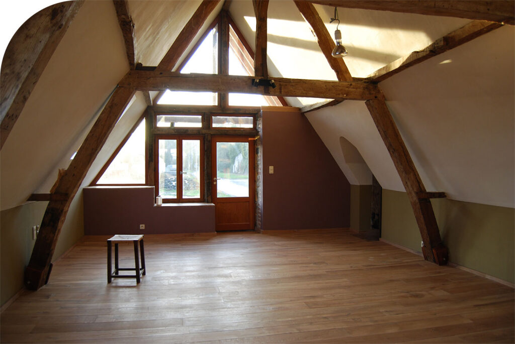 Mortier à la chaux hydraulique naturelle, ciments et plâtres locaux les plus écologiques, utilisation de matériaux de récupérations, etc… Charpentes traditionnelles (neuves ou rénovation dans le respect des règles de l’art, tuiles en terre-cuite, sous-toitures isolants en celit4D.